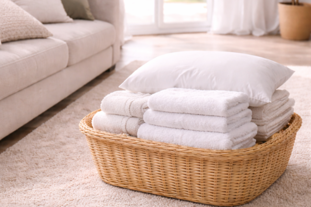 Deep cleaning for home linens, rugs, and carpets, ensuring thorough hygiene without compromising fabric integrity.